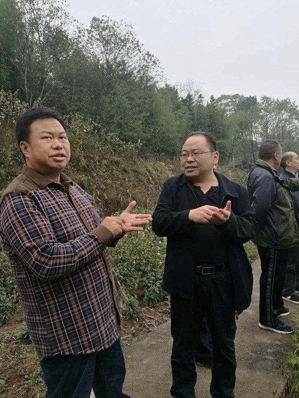 刘昌刚(右一)询问焦坪村产业发展情况