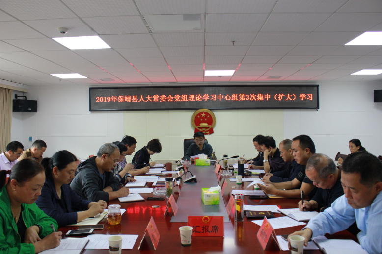 5月30日,保靖县人大常委会党组理论学习中心组举行2019年第3次集中(扩大)学习,县人大常委会党组书记、主任罗念生主持会议,县人大常委会党组副书记、副主任向治学,县人大常委会党组成员、副主任向宏银、李明海、胡宇,县人大常委会党组成员、办公室主任田维福出席会议,县人大常委会(党外)副主任宋梦扬,人大常委会机关党员常委会委员参加学习。