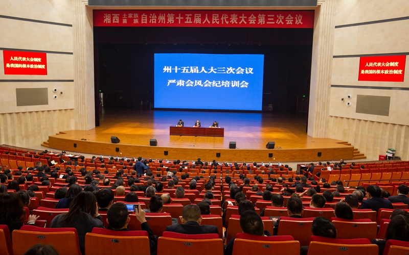 1月9日下午,湘西州十五届人大三次会议严肃会风会纪培训会议在武陵山大剧院召开。州委书记虢正贵出席会议并讲话,州委副书记、州长陈华,州委副书记廖良辉出席会议,州人大常委会党组书记吴凌频主持会议,州委常委、州纪委书记、州监委主任何锋作严肃会风会纪培训。